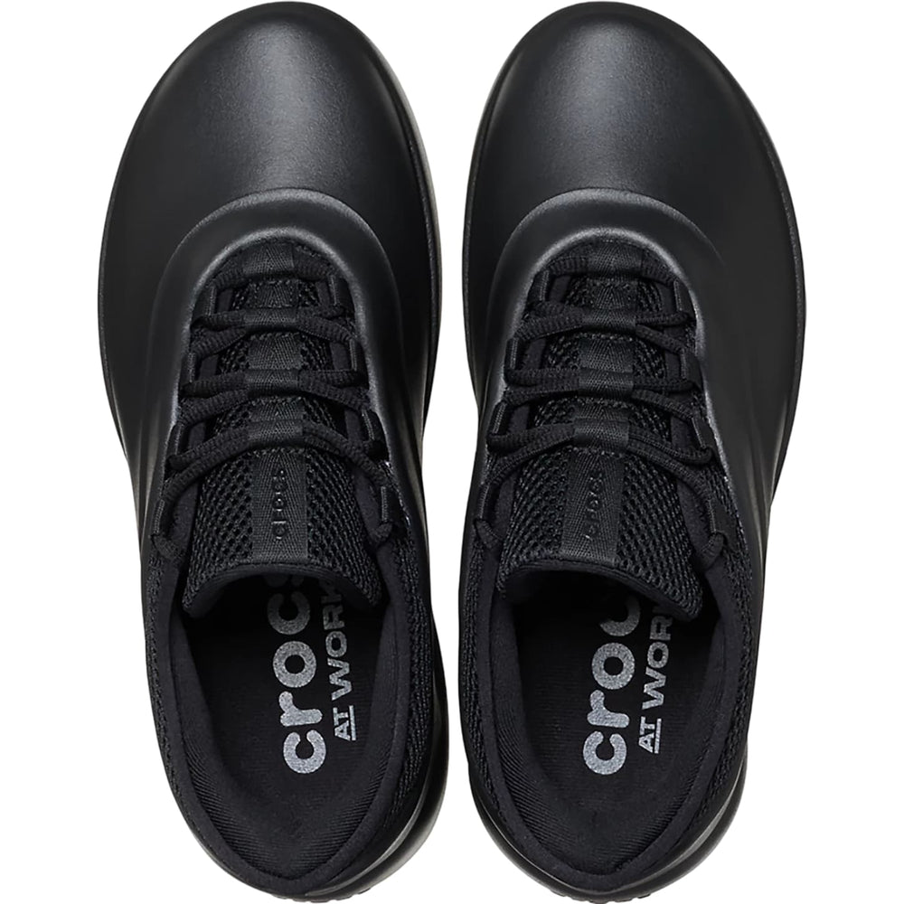 The Crocs Men's Bistro Work Sneaker combines sneaker-like comfort with the job-ready protection needed for fast-paced workdays. Its hybrid design features a breathable textile upper with durable molded coverage for stain resistance and easier cleaning. A Croslite™ foam footbed delivers lightweight cushioning, while the Crocs Lock™ slip-resistant outsole helps keep you steady on slick floors. Designed for service, healthcare, and hospitality professionals who need comfort and traction all day.