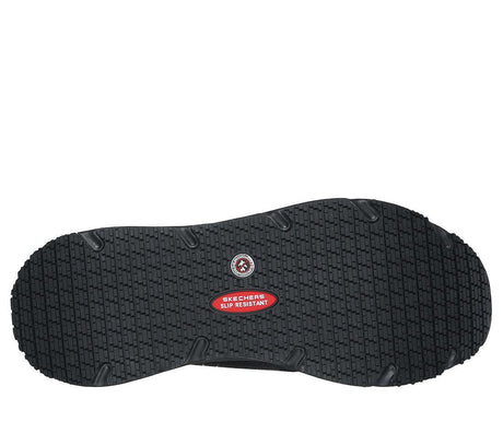 • Memory foam insoles provide all-day comfort, while slip-resistant outsoles ensure safety on slick surfaces. Ideal for kitchen crews, hospitality staff, and healthcare workers, Skechers keeps you steady so you can focus on your job.